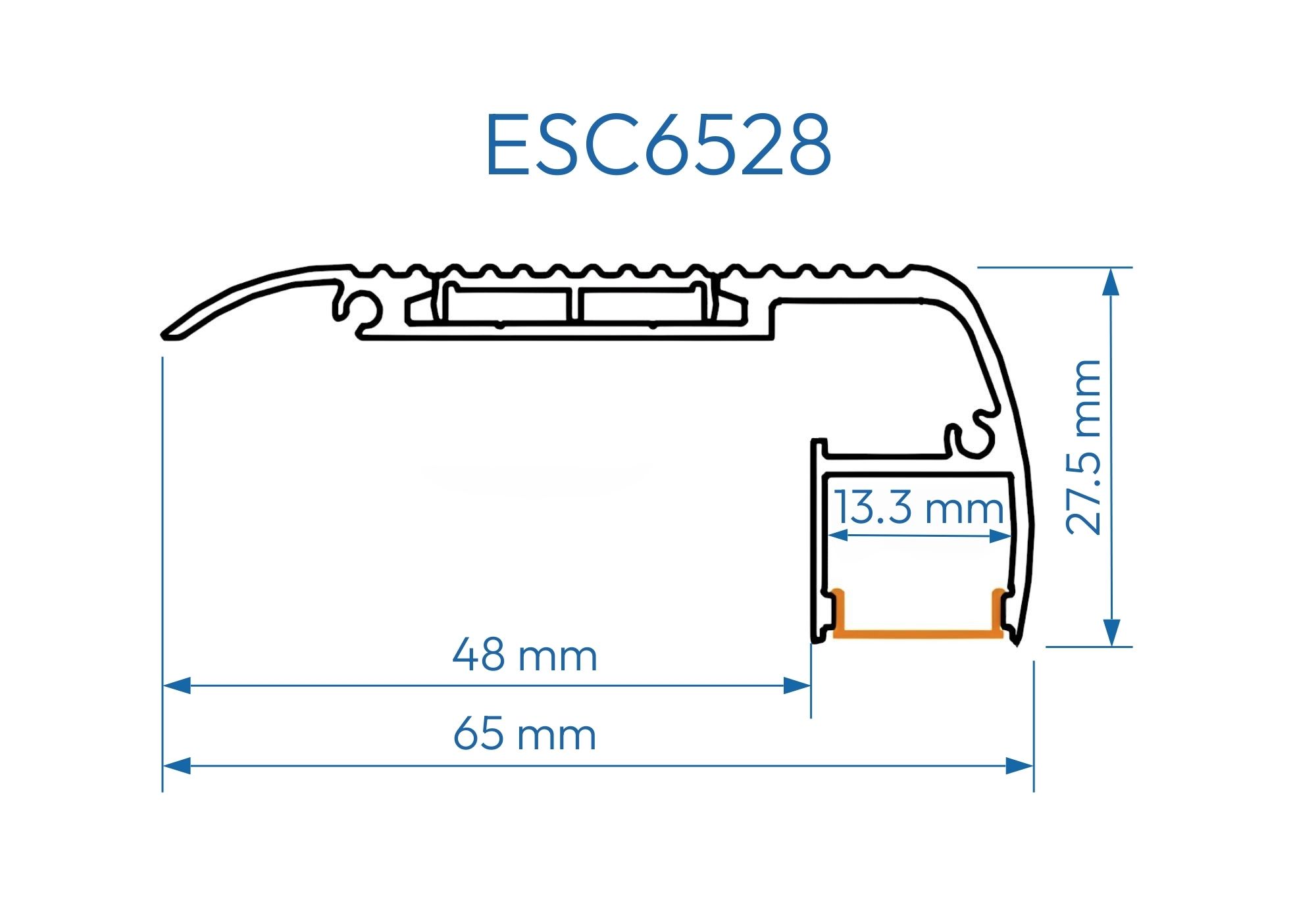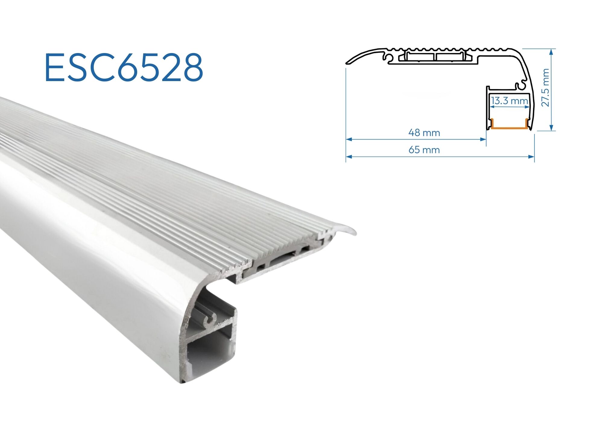 Perfil de Aluminio para escaleras con antideslizante en caucho y difusor Opal