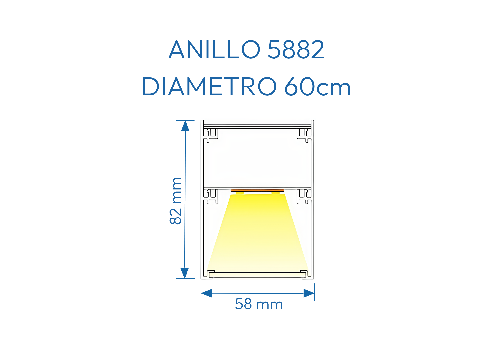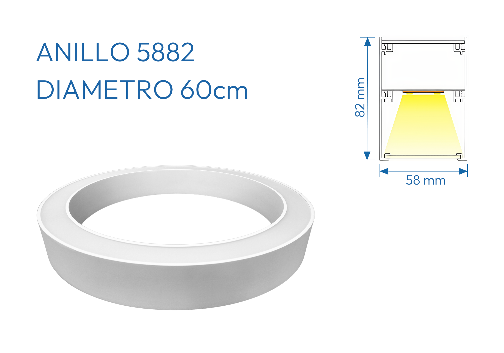 Este anillo de perfil se puede iluminar con series de regletas de corriente constante de 14cm de largo (Cod: 3036168-3036169-3036170) o con cinta LED