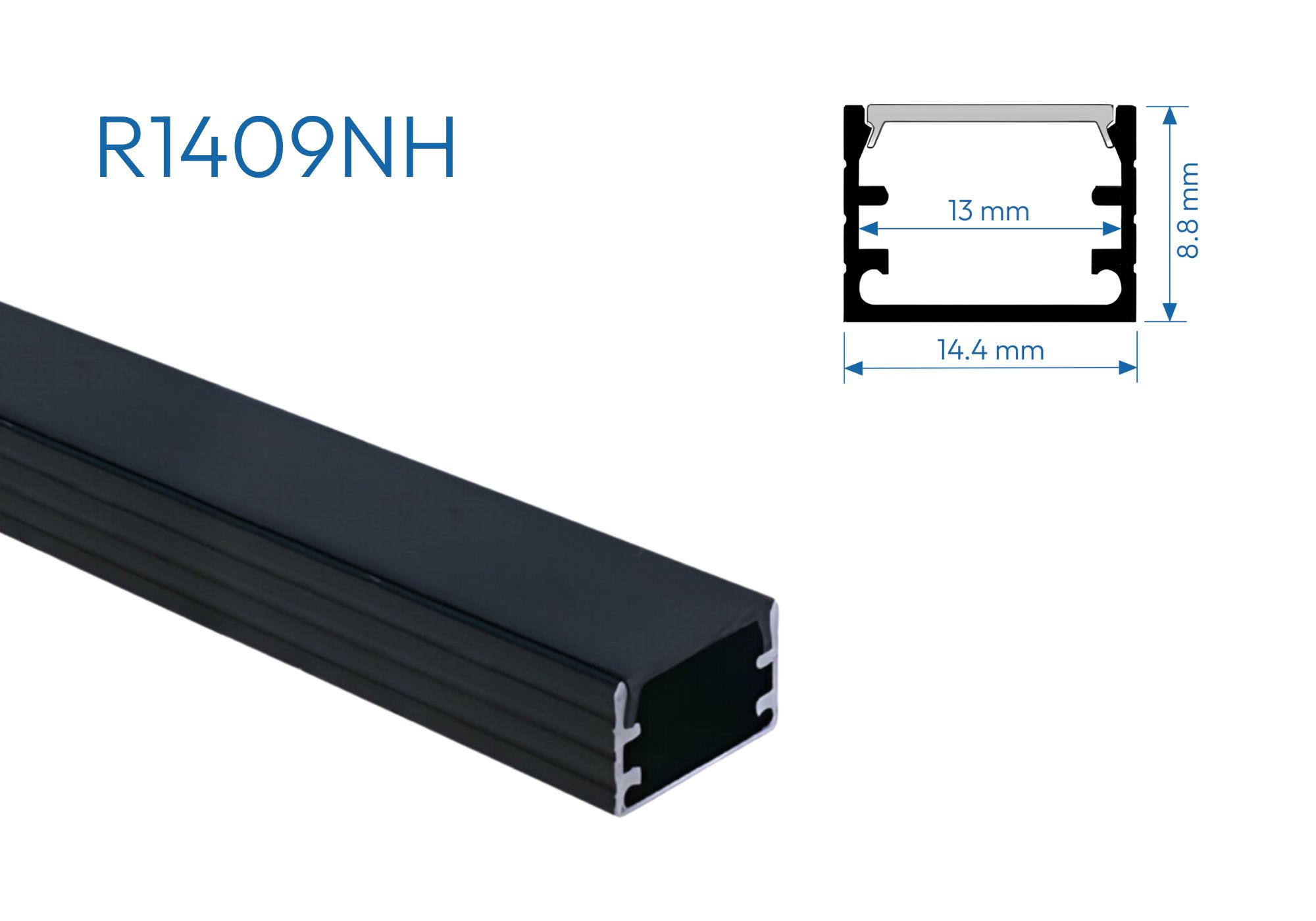 Perfil en Aluminio negro con difusor humo para fabricar luminarias lineales con Cinta LED o regletas LED