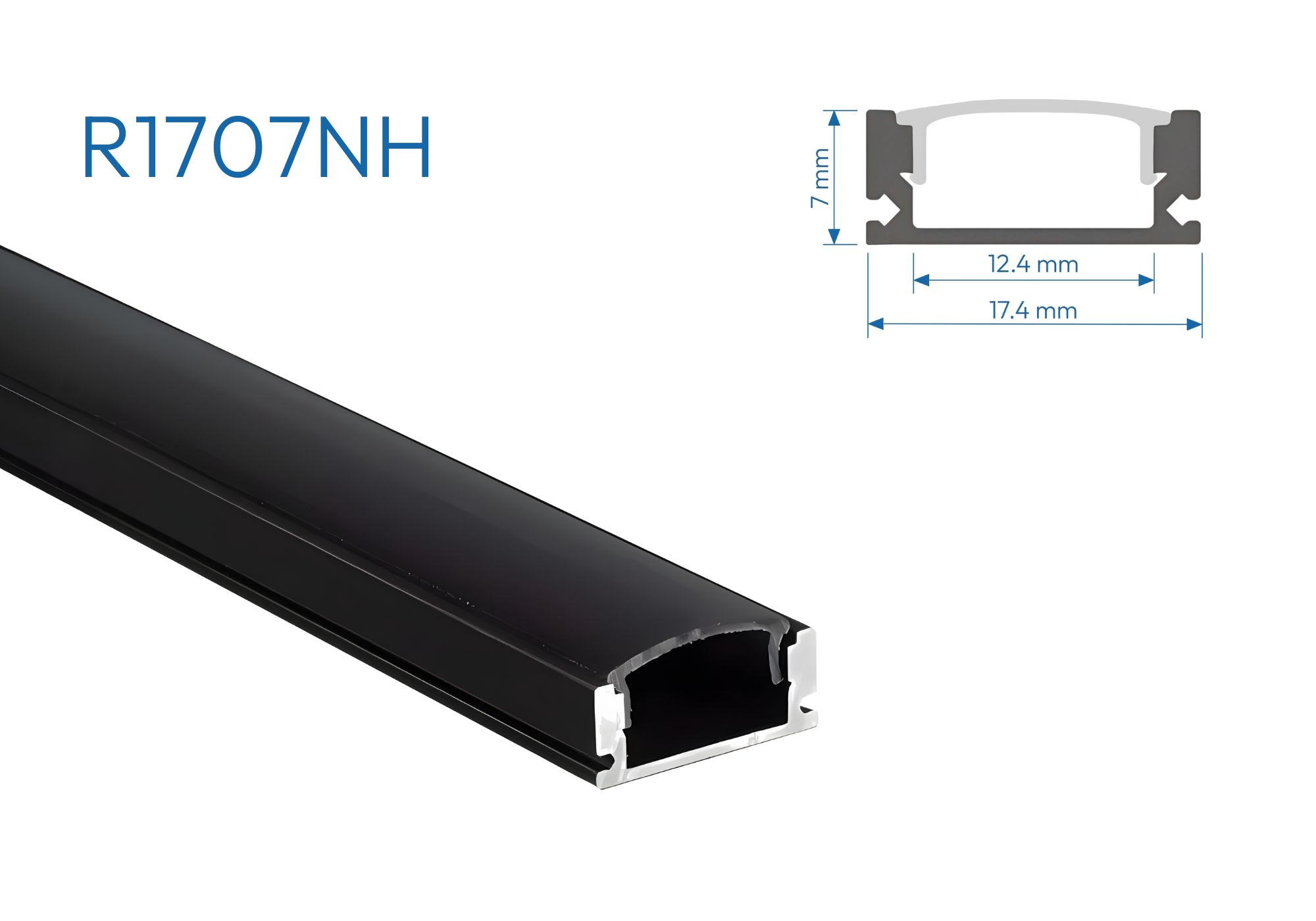 Perfil en Aluminio negro con difusor humo para fabricar luminarias lineales con Cinta LED o regletas LED