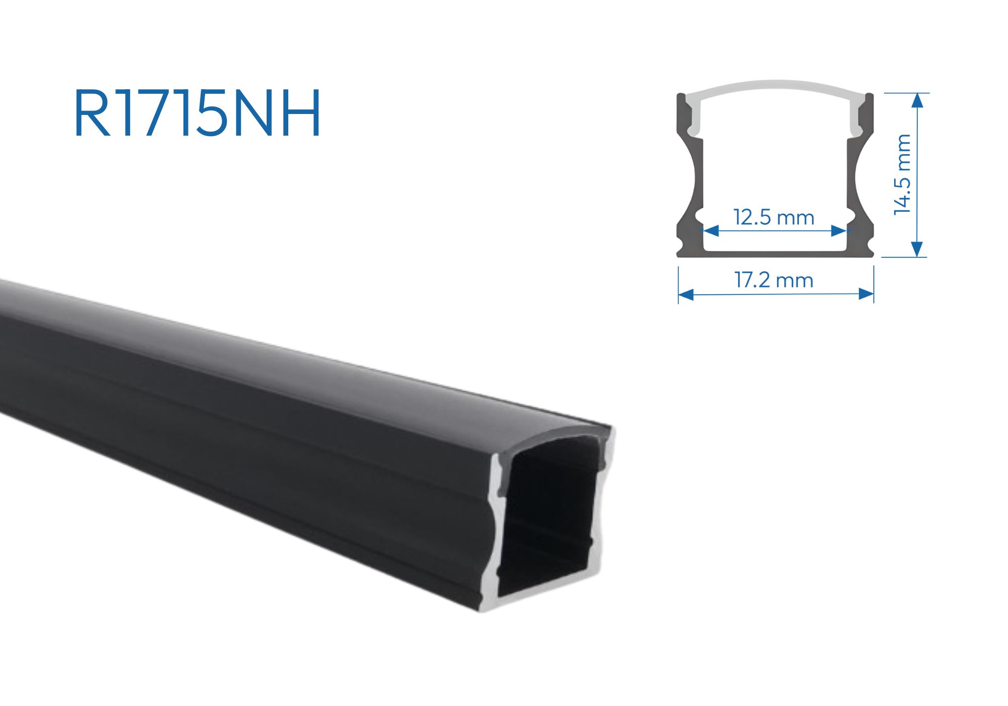 Perfil en aluminio negro con difusor Humo para fabricar luminarias lineales con Cinta LED o regletas LED