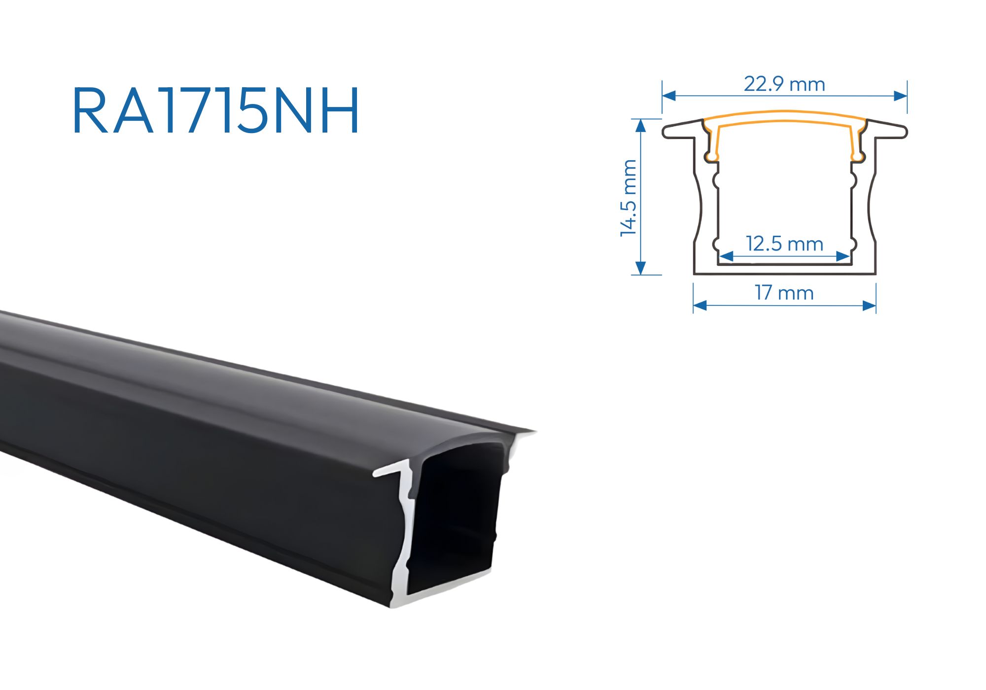 PERFIL EN ALUMINIO NEGRO CON DIFUSOR HUMO