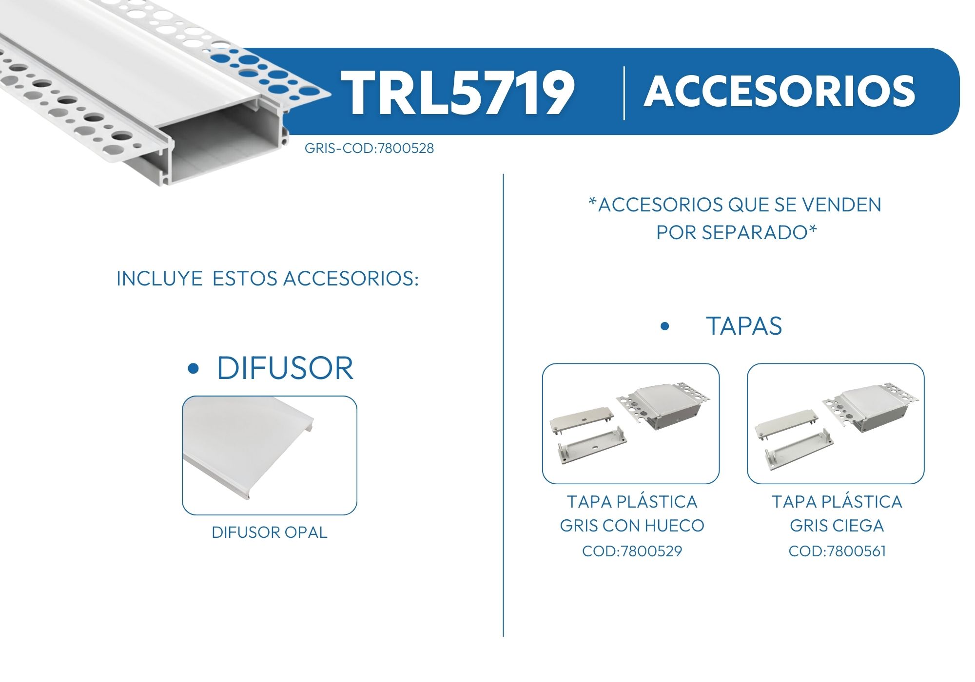 PERFIL EN ALUMINIO CON DIFUSOR OPAL